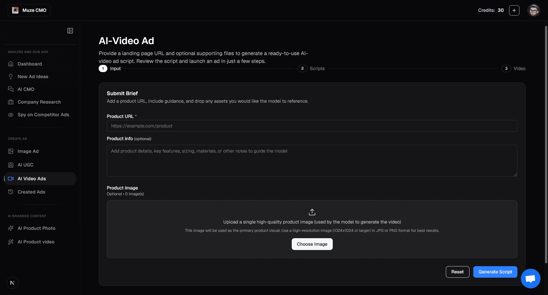AI-Generated Concepts: Get multiple creative script concepts tailored to your product.