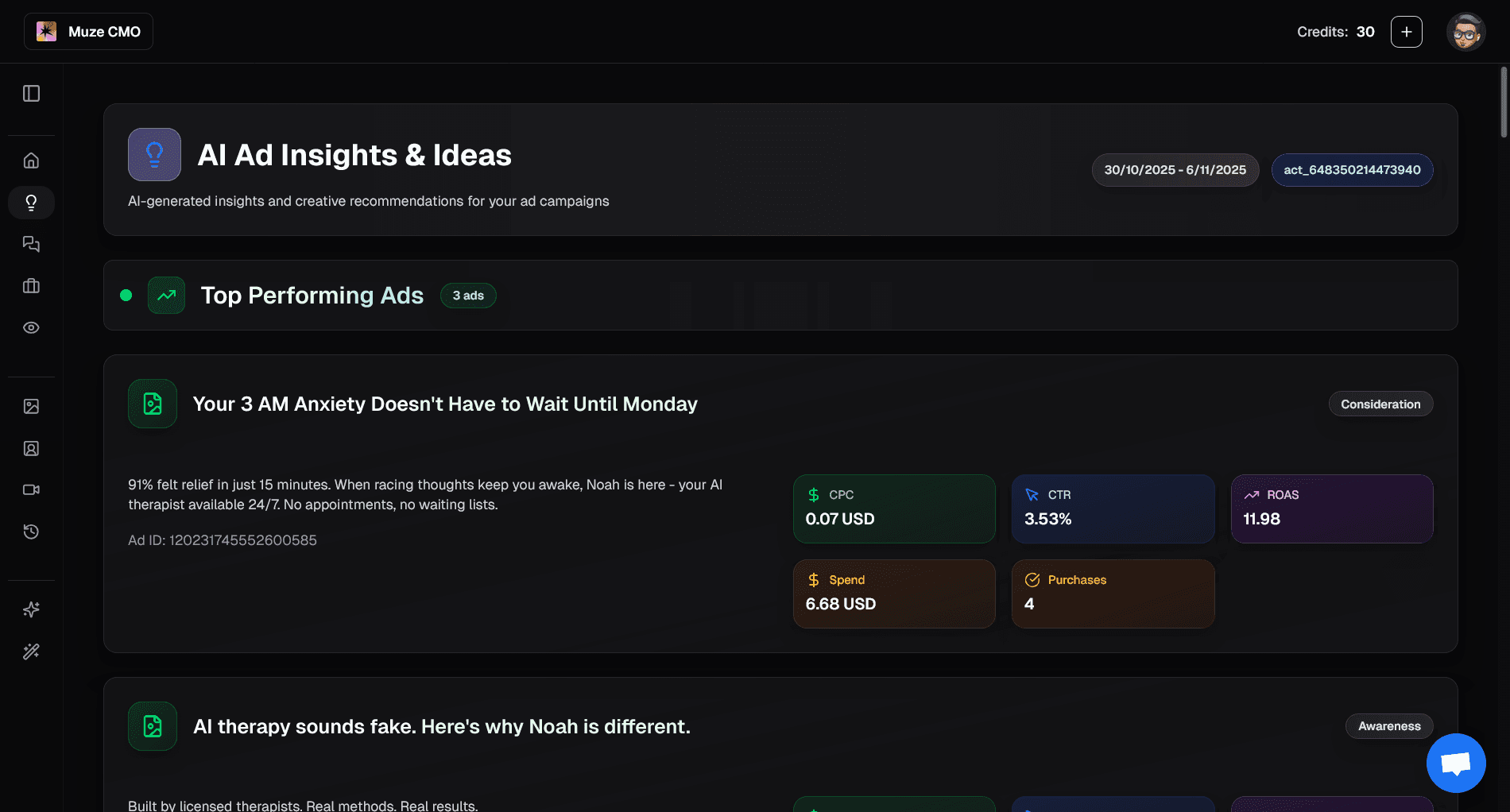 Instantly access 5 new, AI-generated ad concepts tailored for your audience.